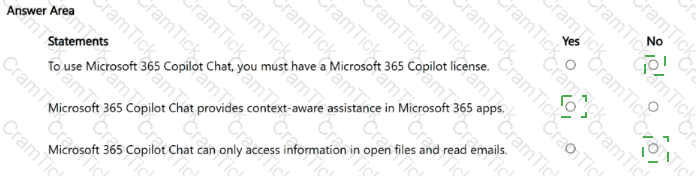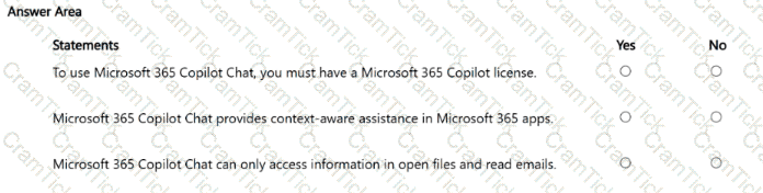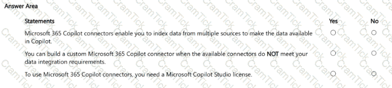 - For each of the following statements, select Yes if the statement is true. Otherwise, select No. NOTE: Each correct selection is worth one point.