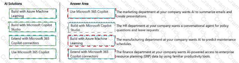 Match the business scenario to the appropriate AI solution design approach. Each solution may be used once, more than once, or not at all.