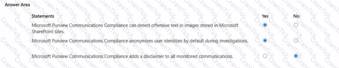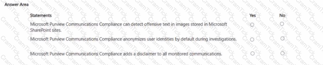 For each of the following statements, select Yes if the statement is true. Otherwise, select No. NOTE: Each correct selection is worth one point