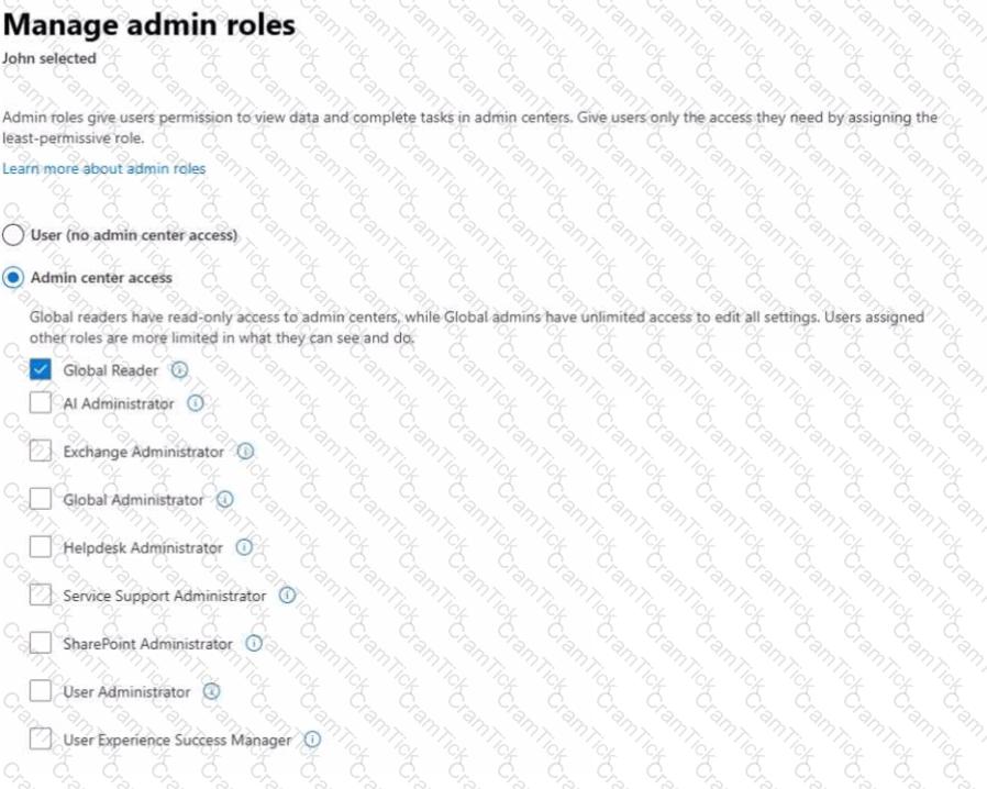 A user named John is assigned an admin role as shown in the following exhibit.