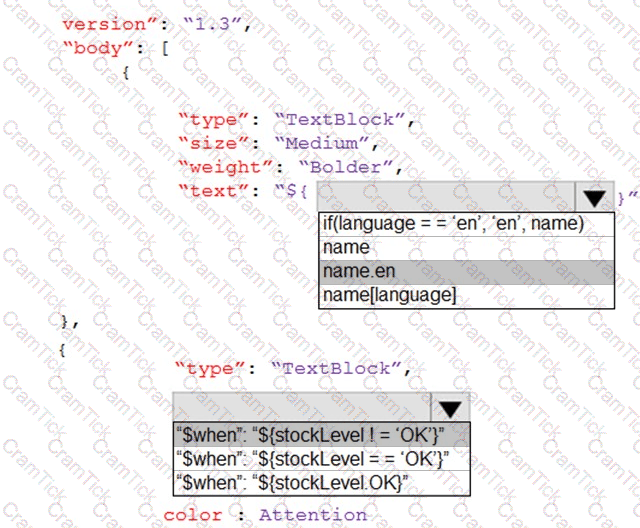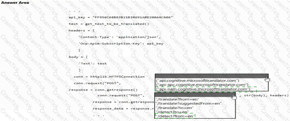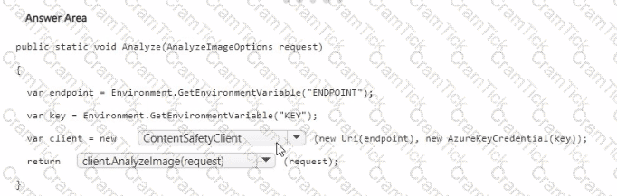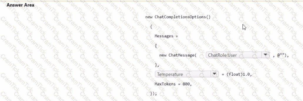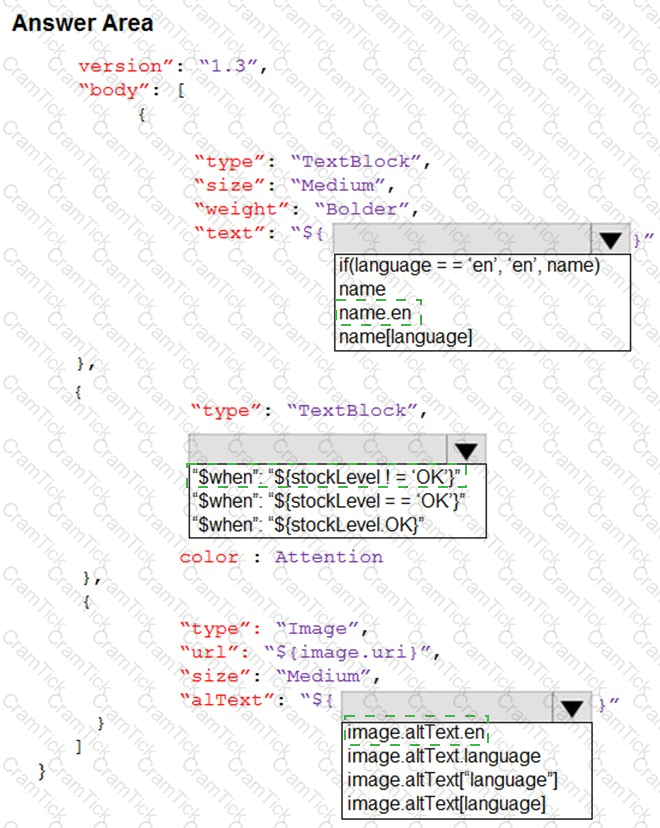 How should you complete the code? To answer, select the appropriate options in the answer area. NOTE: Each correct selection is worth one point.