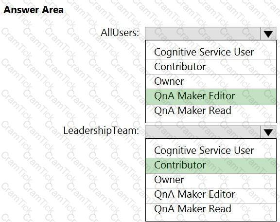 Which role should you assign to AllUsers and LeadershipTeam? To answer, select the appropriate options in the answer area.