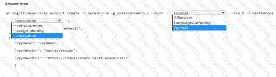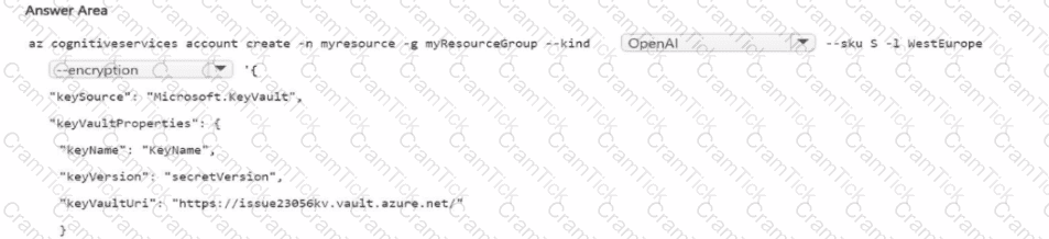 You need to create a new resource that will generate fictional stories in response to user prompts. The solution must ensure that the resource uses a customer-managed key to protect data.