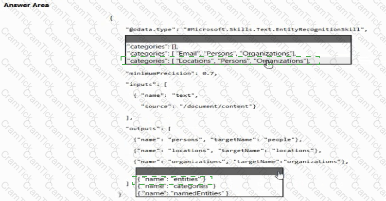 You are developing the knowledgebase by using Azure Cognitive Search.