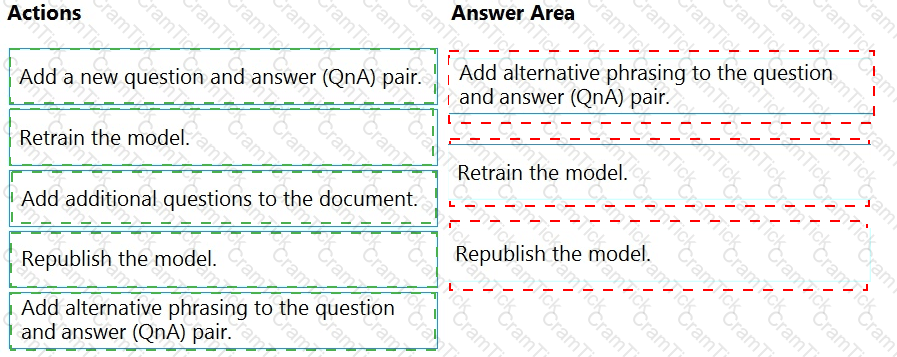 Which three actions should you perform in sequence actions from the list of actions to the answer area and arrange them in the correct order.