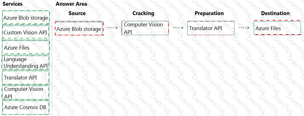 How should you complete the skillset design diagram? To answer, drag the appropriate services to the correct stages. Each service may be used once, more than once, or not at all. You may need to drag the split bar between panes or scroll to view content.