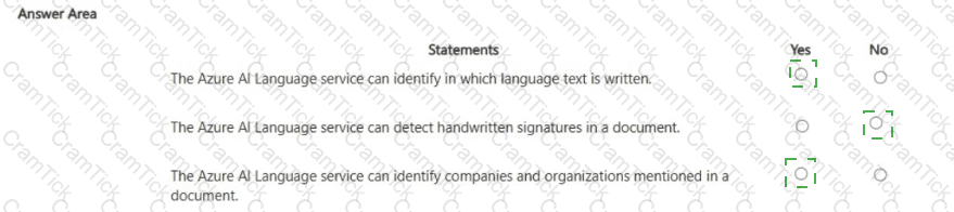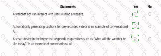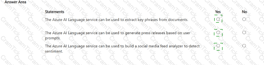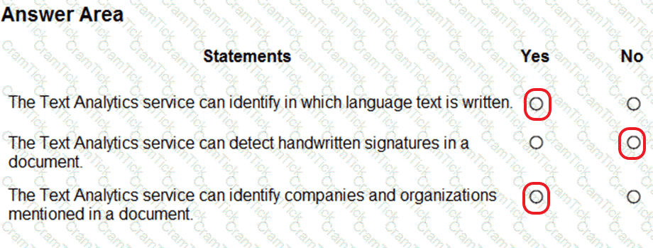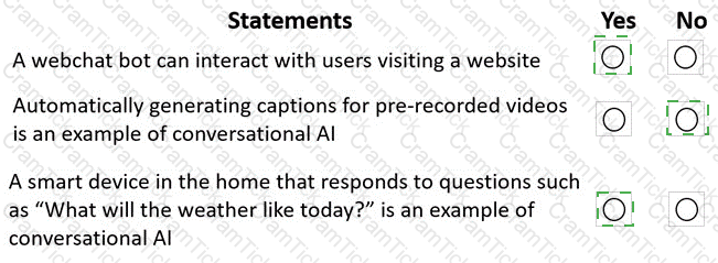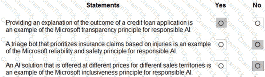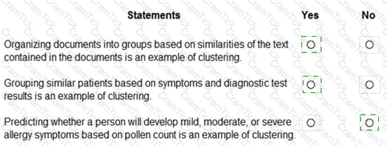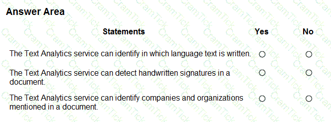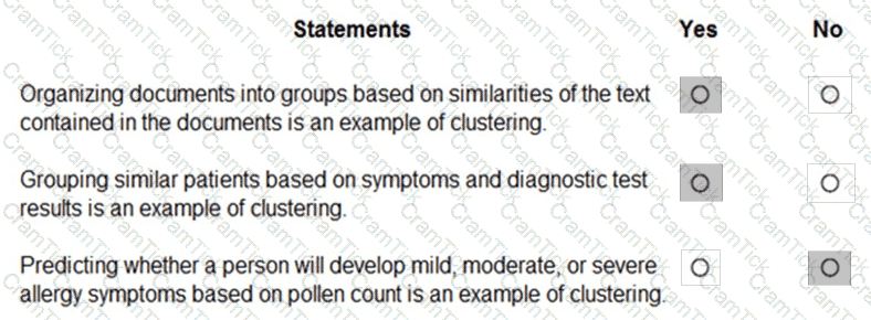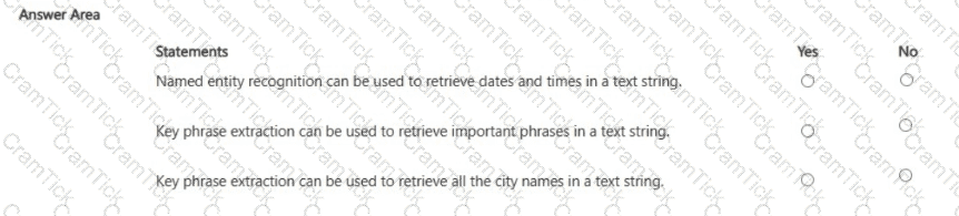 For each of the following statements select Yes if the statement is true. Otherwise, select No.