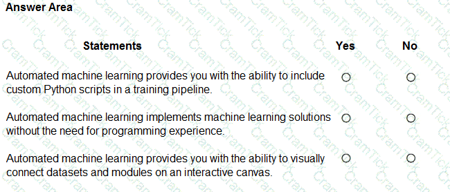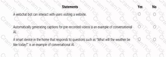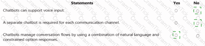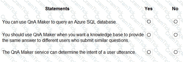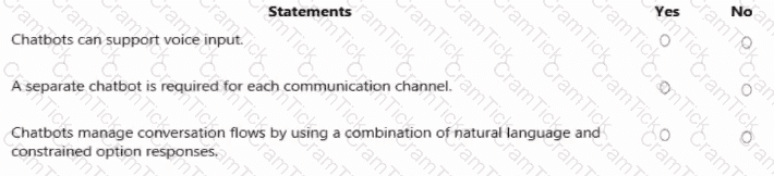 For each of the following statements, select Yes if the statement is true. Otherwise, select No.