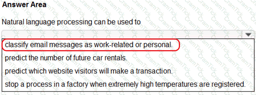 Which two types of natural language processing (NLP) workloads does the solution use? Each correct answer presents part of the solution.