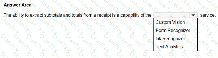 You need to implement a pre-built solution that will identify well-known brands in digital photographs. Which Azure Al sen/tee should you use?