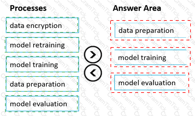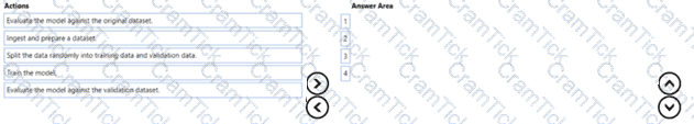 Which three processes should you perform in sequence before you deploy the model? To answer, move the appropriate processes from the list of processes to the answer area and arrange them in the correct order.