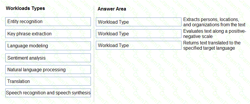 Match the types of natural languages processing workloads to the appropriate scenarios.