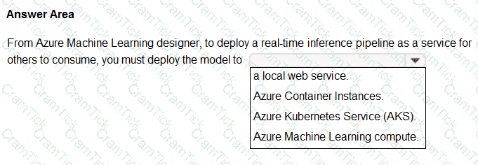 You plan to deploy an Azure Machine Learning model by using the Machine Learning designer