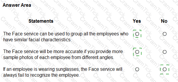 For each of the following statements, select Yes if the statement is true. Otherwise, select No. NOTE: Each correct selection is worth one point.