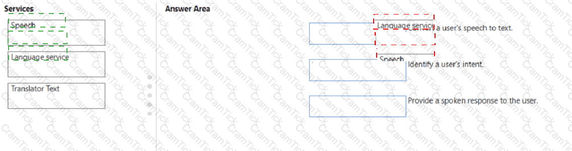 Match the Azure Cognitive Services service to the appropriate actions.
