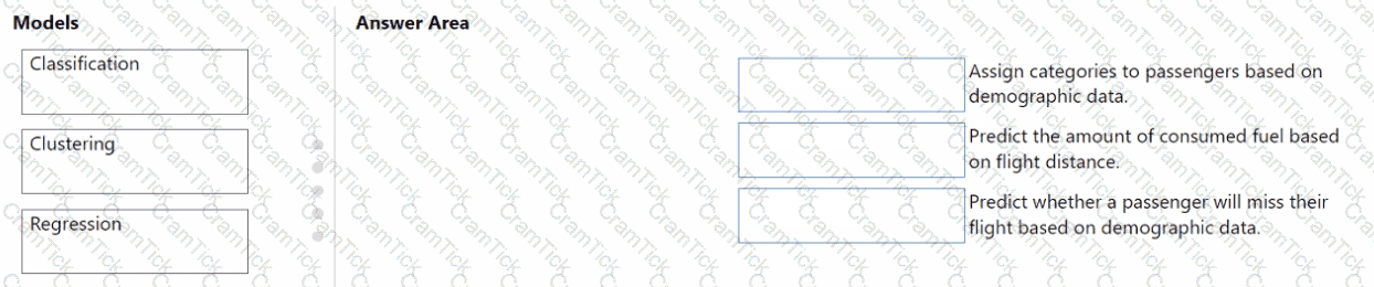 To answer, drag the appropriate model from the column on the left to its scenario on the right. Each model may be used once, more than once, or not at all.