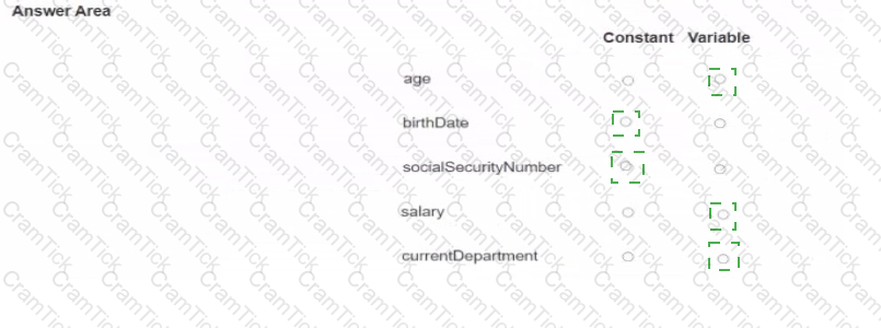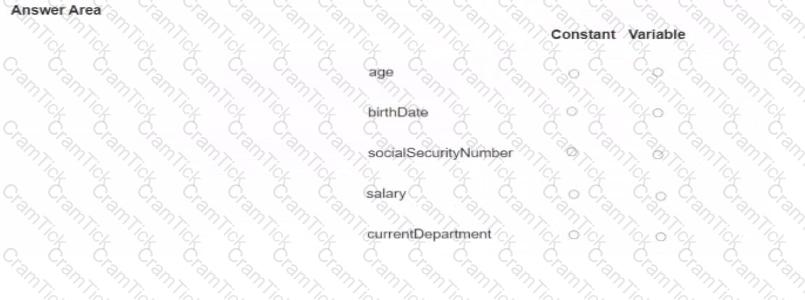 You are creating or updating human resource records for your employees. For each identifier, select whether it is a Constant or a Variable