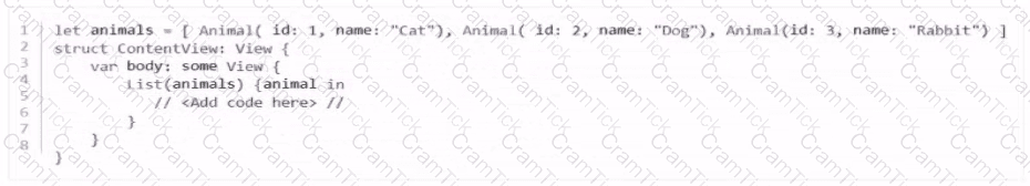 Given a struct called Animal, what line of code should be added on line 5 in order to produce the output shown?
