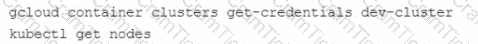 When you run the Kubect1 get nodes command, you only see the nodes from prod-cluster Which commands should you run to check the node status for dev-cluster?