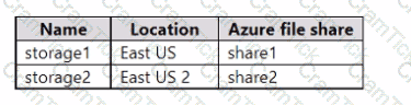 You have an Azure subscription that contains a virtual network named VNet1. a storage account named storage1, and five Azure Virtual Desktop session hosts. VNet1 and storage1 ate in the East US Azure region. The session hosts are connected to VNet1.
