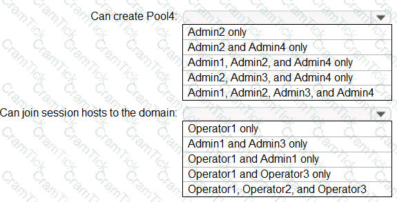Which users can create Pool4, and which users can join session hosts to the domain? To answer, select the appropriate options in the answer area.
