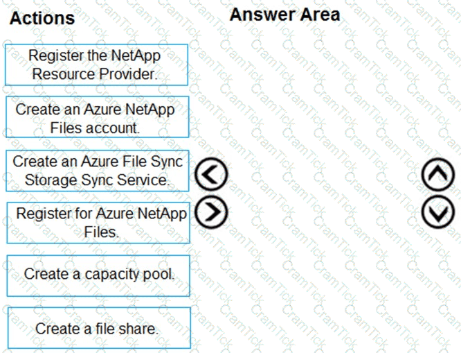 Which four actions should you perform in sequence? To answer, move the appropriate actions from the list of actions to the answer area and arrange them in the correct order.