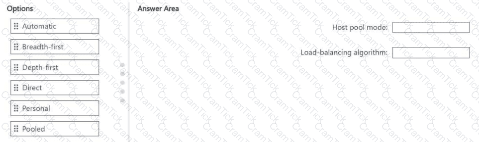 You need to recommend which type of host pool and load-balancing algorithm to use.