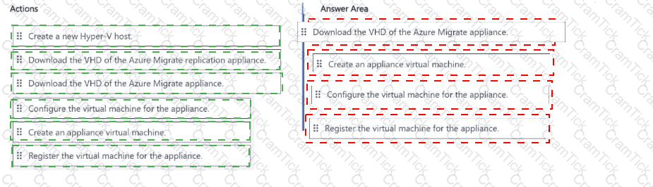 Which three actions should you perform in sequence? To answer, move the appropriate actions from the list of actions to the answer area and arrange them in the correct order.