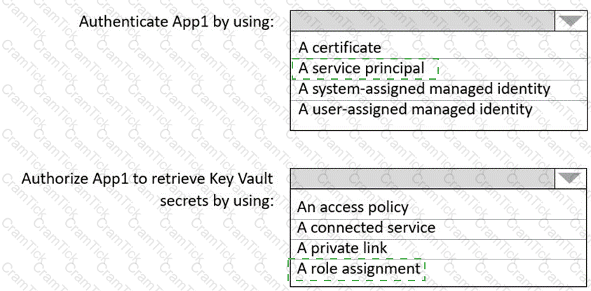 Which additional permissions should you assign to App1? To answer, select the appropriate options in the answer area.