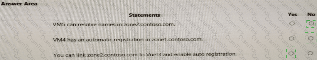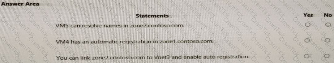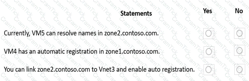 You need to ensure that virtual machines on VNET1 and VNET2 are included automatically in a DNS zone named contoso.azure. The solution must ensure that the virtual machines on VNET1 and VNET2 can resolve the names of the virtual machines on either virtual network.