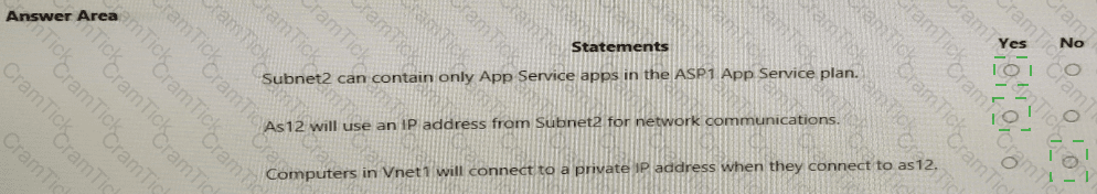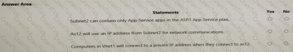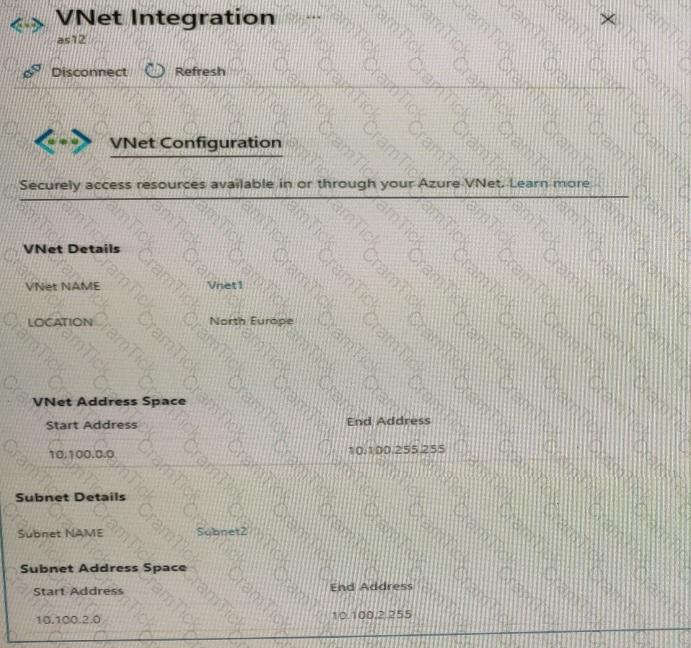 The VNet Integration settings for as12 are configured as shown in the Vnet Integration exhibit.