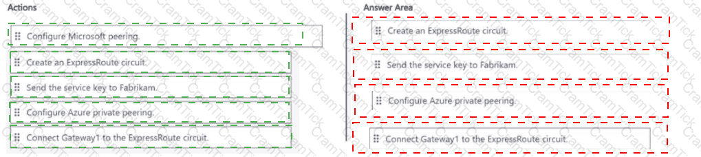 You need to implement an ExpressRoute solution from a third-party provider named Fabrikam, Inc. The solution must ensure that devices on the on-premises network can connect to the Azure resources on VNet1.
