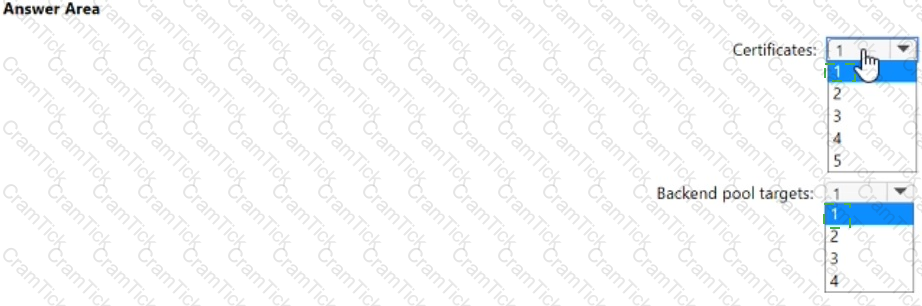 How many locations should you import to the certificate, and how many targets should you add to the backend pool of AG1? To answer, select the appropriate options in the answer area.