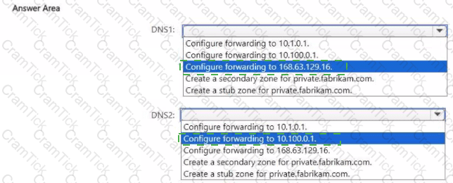 Your on-premises network contains a server named DNS1 that runs Windows Server 2022. DNS1 has the DNS server role and an IP address of 10.1.0.1. The network contains computers that use DNS1 for name resolution.
