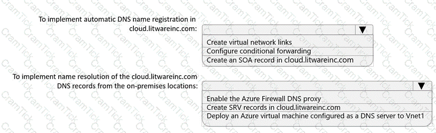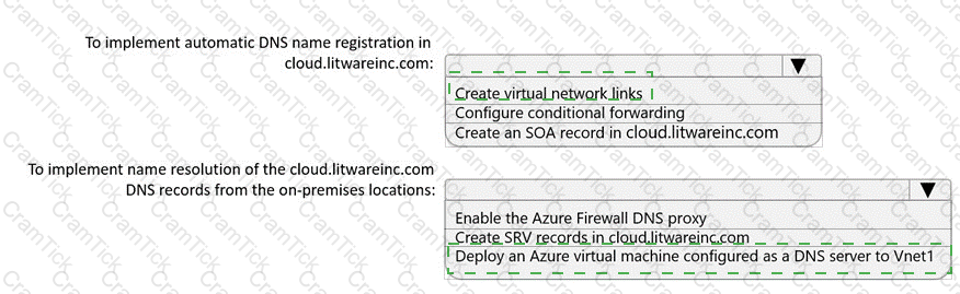 You need to implement name resolution for the cloud.liwareinc.com. The solution must meet the networking requirements.