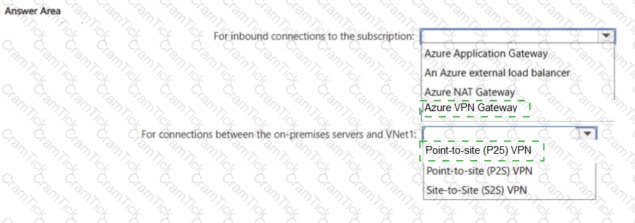 You plan to deploy an app named App1 that will be hosted on the on-premises servers and will connect to DB1 by using Azure Network Adapter.