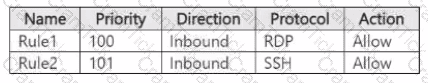 NSG1 is associated to the NIC of VM1 and contains the rules shown in the following table.