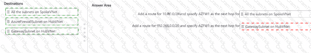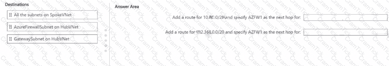You deploy an Azure firewall named AZFW1 to HubVNet.