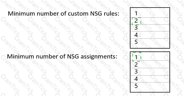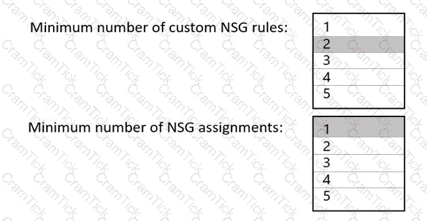 What is the minimum number of custom NSG rules and NSG assignments required? To answer, select the appropriate options in the answer area.