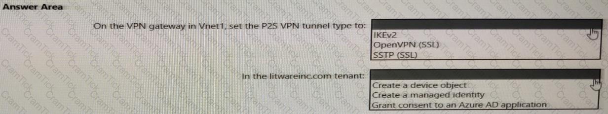 • Ensure that the users can establish Point-to-Site (P2S) VPN connections to vGW1.