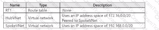 Your on-premises network uses an IP address space of 10.0.0.0/20.