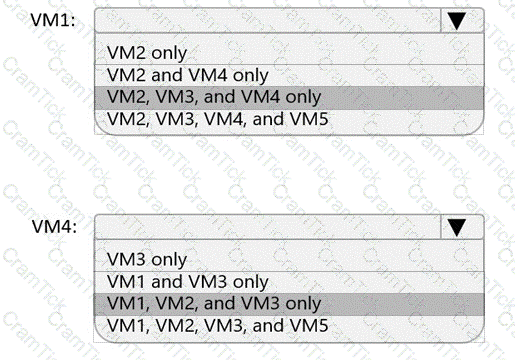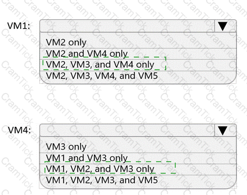 Which virtual machines can VM1 and VM4 ping successfully? To answer, select the appropriate options in the answer area.