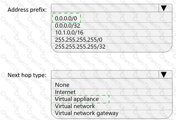 What should you include in a custom route that is linked to Subnet2? To answer, select the appropriate options in the answer area.