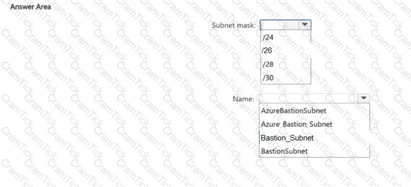You need to configure a subnet for Azure Bastion. The solution must minimize the number of IP addresses required for the subnet