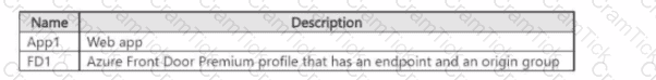 You plan to deploy an app named App1 by using Azure App Service. Users will access App1 by using FD1.