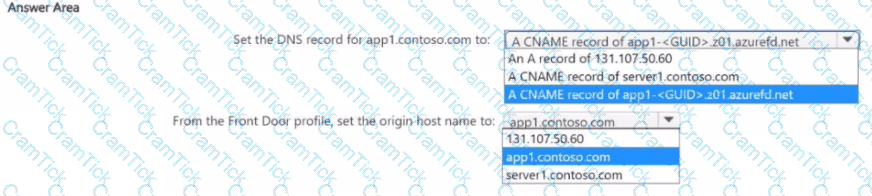 You need to publish App1 by using Azure Front Door. The solution must meet the following requirements: