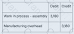 Valley Manufacturing uses a process costing system. Which of the following journal entries would correctly record $3,180 of manufacturing overhead to the assembly department?