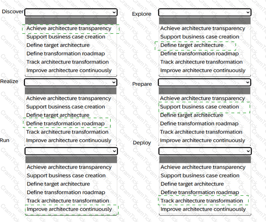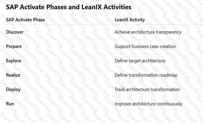 Match the SAP LeanIX activities in the dropdown lists to the SAP Activate phases.