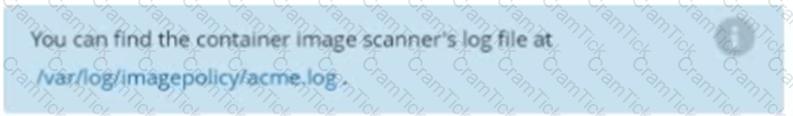A container image scanner is set up on the cluster, but it's not yet fully integrated into the cluster s configuration. When complete, the container image scanner shall scan for and reject the use of vulnerable images.