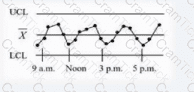A continuous process yields the following output data. On the basis of this chart, which of the following questions would be appropriate to ask about this process?